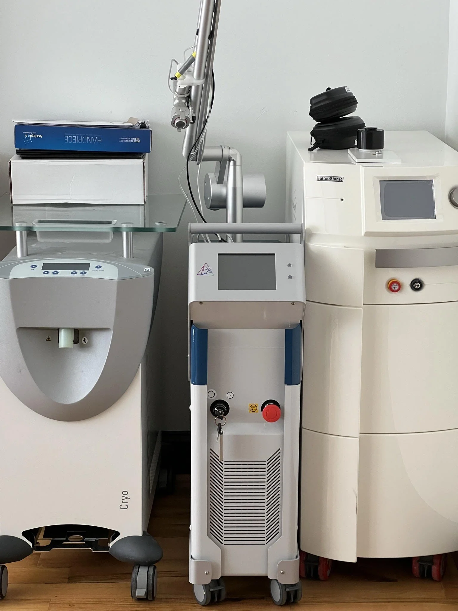 The Trinity laser comprises two powerful lasers, a Q-switched Nd:YAG laser and a Q-switched ruby laser. The Trinity is backed by Astanza, the leader in tattoo removal and aesthetic technology. It is also trusted by leading physicians, laserpractitioners, tattoo artists, and medical spas worldwide for its safety, precision, and efficacy in treating unwanted tattoos and pigmented blemishes.
